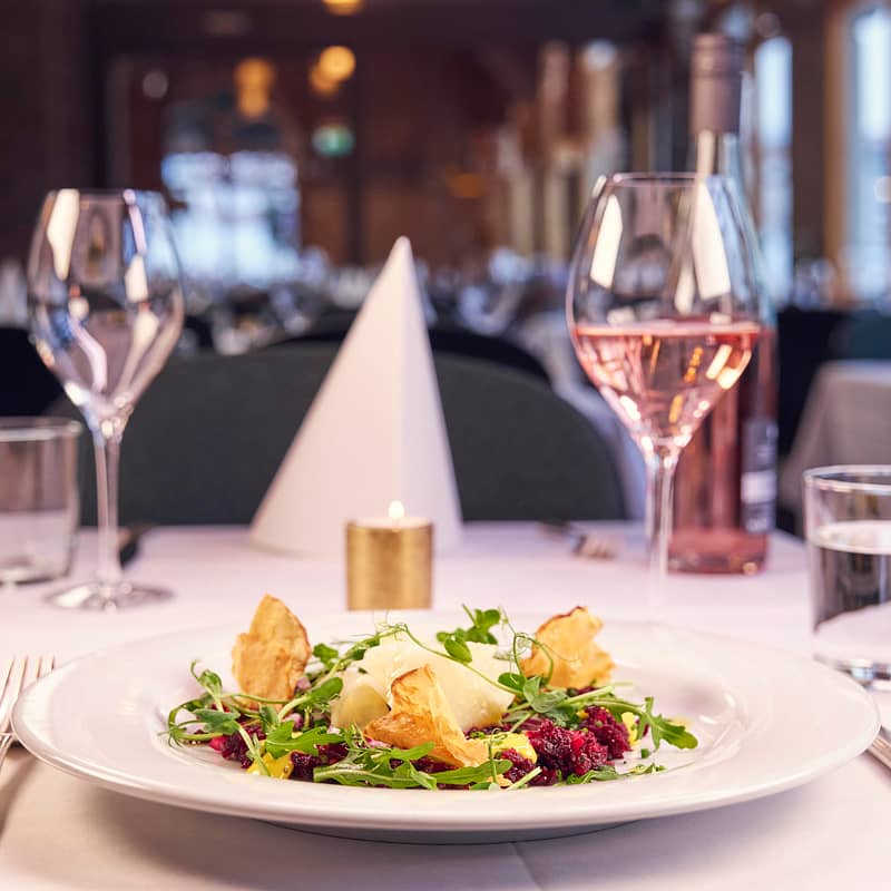 Er en klassisk restaurant med lokale råvarer fra både sjø og land. Opplev det beste av Vestnorske råvarer, servert på en klassisk måte i historiske omgivelser.