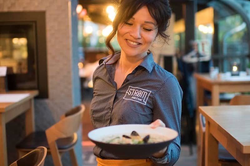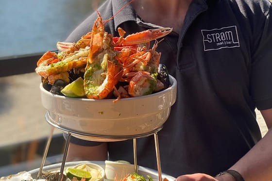Start gjerne med å reservere bord på Strøm mat & bar sin nettside.