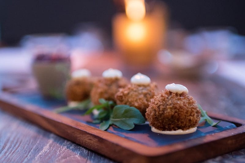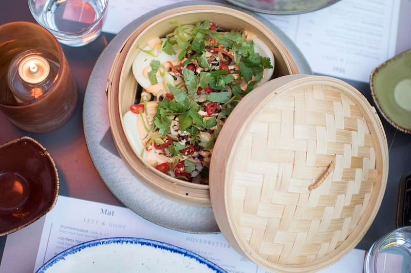 Vi serverer a la carte med enkle retter inspirert fra hele verden, med gode råvarer og mye stolthet – og selvsagt helt fra bunnen. Denne skifter vi 5 ganger i året (hver sesong, og en egen julemeny). Du finner både lunsj og middagsretter på menyen vår – og småretter passende snacks eller deling til bordet.
