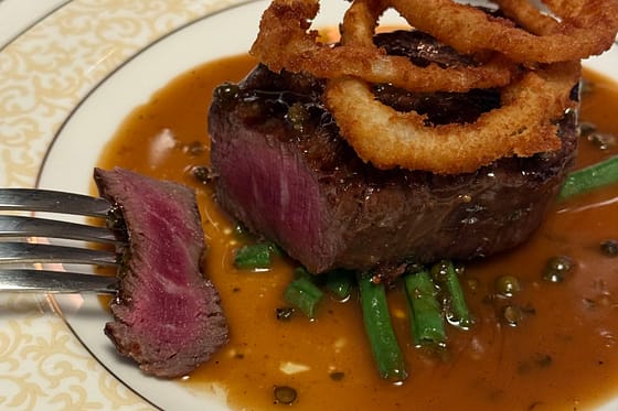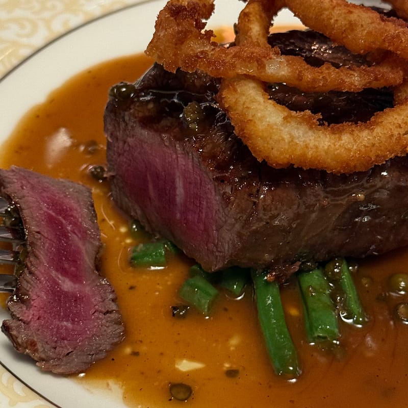 Menyen er a la carte med ekte og ærlig fransk mat av de beste råvarene, rene, gode smaker og mat av høy kvalitet med en vinkjeller som har noe fra hele verden.